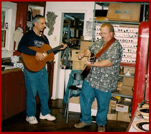 Dave Sherman & Dave Smith perform in the shop. |