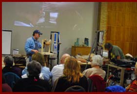 Several times a year David travels to present workshops demonstrating pottery techniques to schools and potter’s groups. |