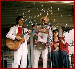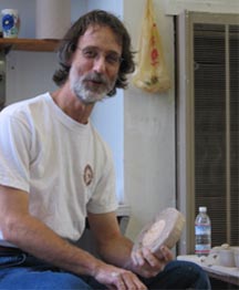 David has attended the Texas Clay Festival in Gruene, Texas every year since 1993. Left, demonstrating at the festival in 2001. Right, David plays "The Cobalt Blues" with Don Gallia, Dirje Smith, and Robin Hopper in 2008. |