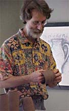 Demonstrating extruding techniques for Dannon Rhudy's classes at a workshop at Paris Junior College, 1999. |