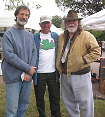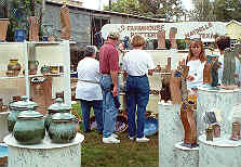 From 1990 to 1995 David traveled to about 10 art fairs a year, to display and sell his pottery. Now most of the pottery is sold at the shop, and The Texas Clay Festival in October is usually the only fair he attends. Here he is at the festival with friends and fellow potters John Williams and Randy Brodnax. |