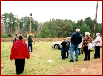 A crowd gathers for a launching with the pot-apult. |